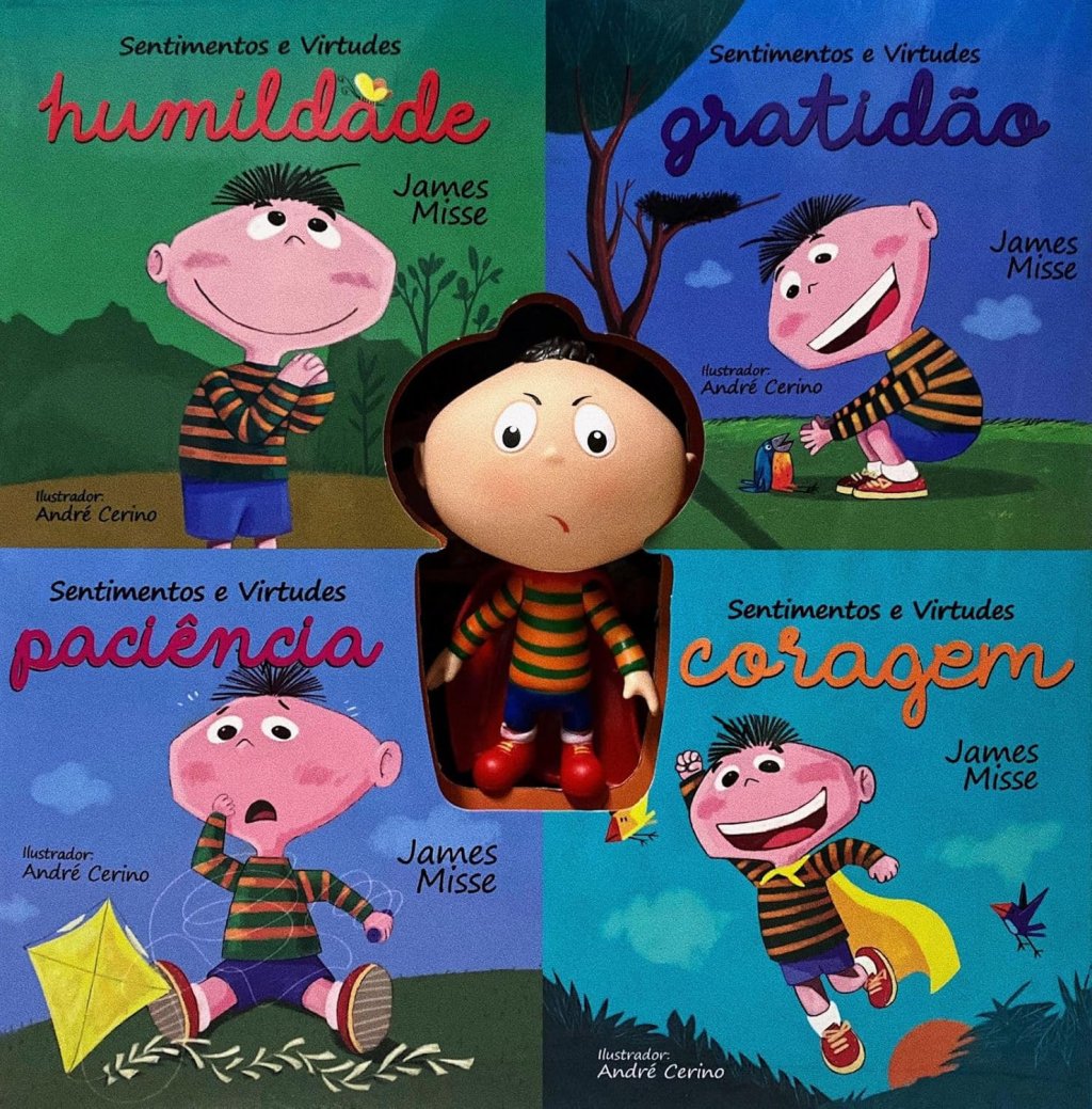 🎨 Características: Conjunto com livros ilustrados da coleção Sentimentos e Virtudes + boneco emocional (Raiva)